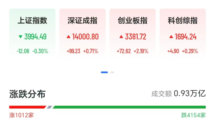 3月20日,A股三大股指涨跌不一,截至10:16,上证指数再度跌破4000点,深证成指涨0.71%,创业板指涨超2%,科创综指涨0.29%。燃气、化工、钛白粉等板块跌幅居前。